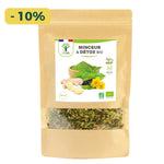Laissez-vous séduire par la saveur unique de notre tisane bio. Ses notes de thé vert et de gingembre vous permettront d'apprécier votre boisson chaude au quotidien. Notre mélange aide à contrôler le poids, à réduire l'appétit et favorise l'oxydation des graisses en parallèle d'une alimentation variée et un mode de vie sain.